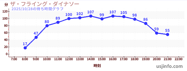 • ザ・フライング・ダイナソー$B$N(B2025年10月28日の待ち時間