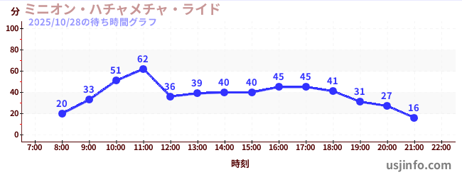 • ミニオン・ハチャメチャ・ライド$B$N(B2025年10月28日の待ち時間