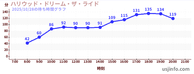 • ハリウッド・ドリーム・ザ・ライド$B$N(B2025年10月28日の待ち時間