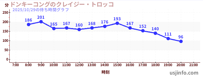 • ドンキーコングのクレイジー・トロッコ$B$N(B2025年10月29日の待ち時間