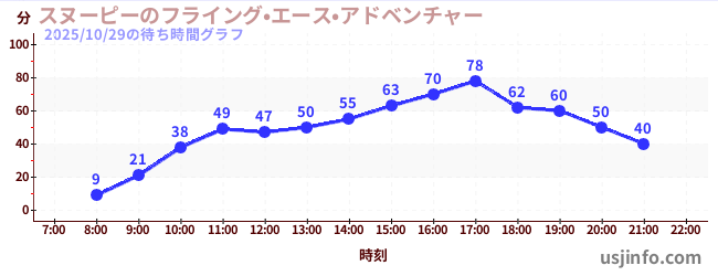 • スヌーピーのフライング•エース•アドベンチャー$B$N(B2025年10月29日の待ち時間