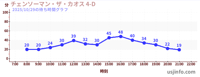 • チェンソーマン・ザ・カオス 4-D$B$N(B2025年10月29日の待ち時間