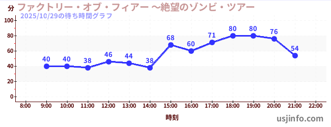 • ファクトリー・オブ・フィアー ~絶望のゾンビ・ツアー$B$N(B2025年10月29日の待ち時間