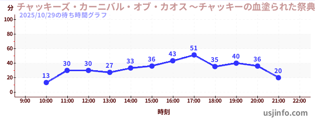 • チャッキーズ・カーニバル・オブ・カオス ~チャッキーの血塗られた祭典~$B$N(B2025年10月29日の待ち時間