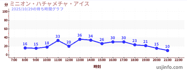 • ミニオン・ハチャメチャ・アイス$B$N(B2025年10月29日の待ち時間