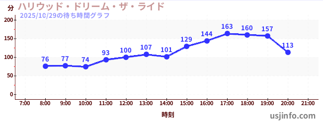 • ハリウッド・ドリーム・ザ・ライド$B$N(B2025年10月29日の待ち時間