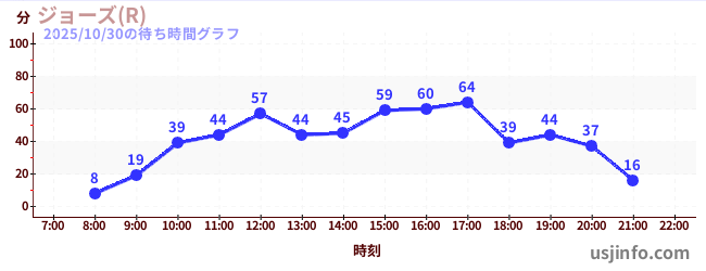 • ジョーズ(R)$B$N(B2025年10月30日の待ち時間