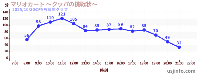 • マリオカート ~クッパの挑戦状~$B$N(B2025年10月30日の待ち時間