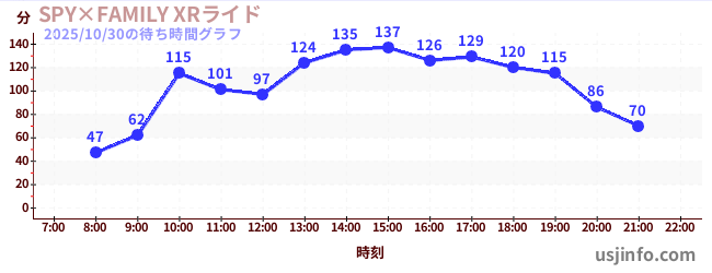 • SPY×FAMILY XRライド$B$N(B2025年10月30日の待ち時間