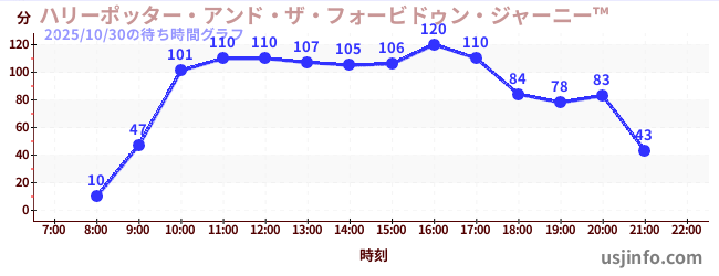 • ハリーポッター・アンド・ザ・フォービドゥン・ジャーニー™$B$N(B2025年10月30日の待ち時間