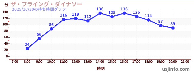 • ザ・フライング・ダイナソー$B$N(B2025年10月30日の待ち時間