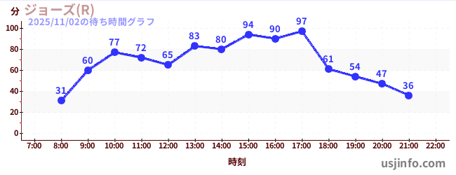 • ジョーズ(R)$B$N(B2025年11月02日の待ち時間