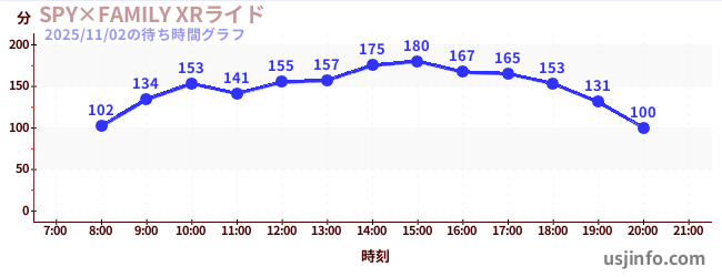 • SPY×FAMILY XRライド$B$N(B2025年11月02日の待ち時間