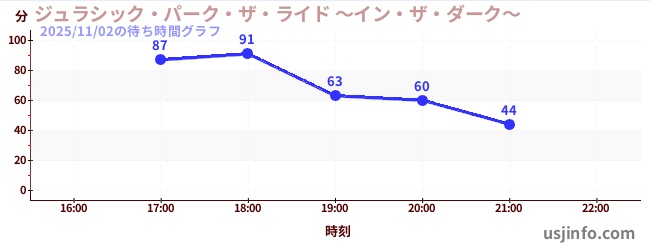 • ジュラシック・パーク・ザ・ライド ~イン・ザ・ダーク~$B$N(B2025年11月02日の待ち時間