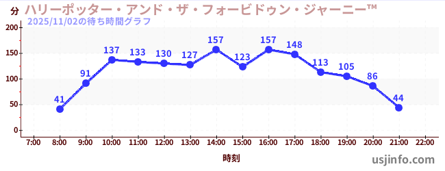 • ハリーポッター・アンド・ザ・フォービドゥン・ジャーニー™$B$N(B2025年11月02日の待ち時間