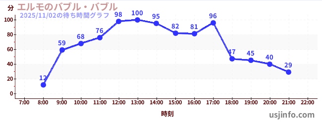 • エルモのバブル・バブル$B$N(B2025年11月02日の待ち時間
