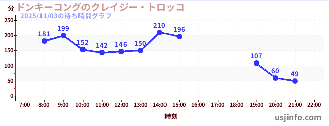 • ドンキーコングのクレイジー・トロッコ$B$N(B2025年11月03日の待ち時間