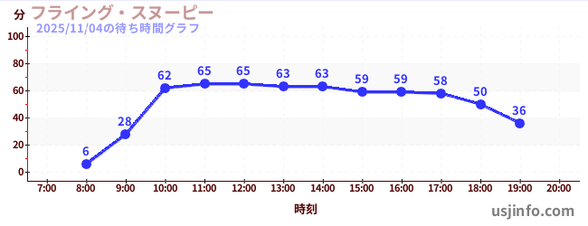 • スヌーピーのフライング•エース•アドベンチャー$B$N(B2025年11月04日の待ち時間