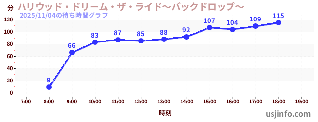 • ハリウッド・ドリーム・ザ・ライド〜バックドロップ〜$B$N(B2025年11月04日の待ち時間
