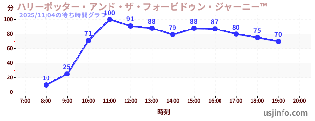 • ハリーポッター・アンド・ザ・フォービドゥン・ジャーニー™$B$N(B2025年11月04日の待ち時間