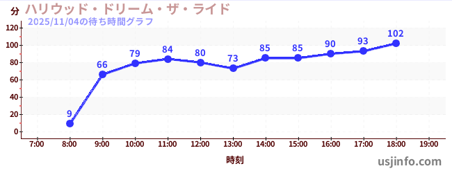 • ハリウッド・ドリーム・ザ・ライド$B$N(B2025年11月04日の待ち時間