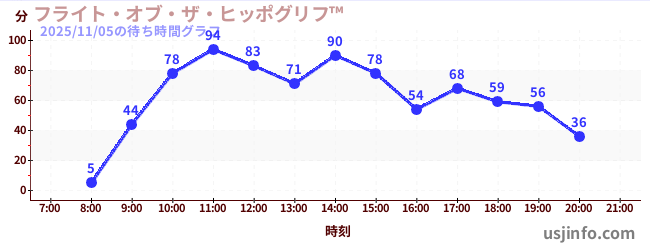 • フライト・オブ・ザ・ヒッポグリフ™$B$N(B2025年11月05日の待ち時間