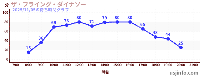 • ザ・フライング・ダイナソー$B$N(B2025年11月05日の待ち時間