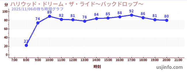 • ハリウッド・ドリーム・ザ・ライド〜バックドロップ〜$B$N(B2025年11月06日の待ち時間