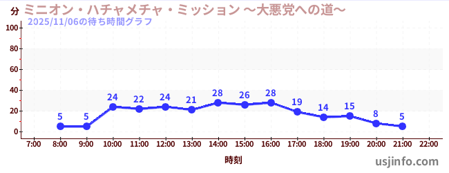 • ミニオン・ハチャメチャ・ミッション ~大悪党への道~$B$N(B2025年11月06日の待ち時間