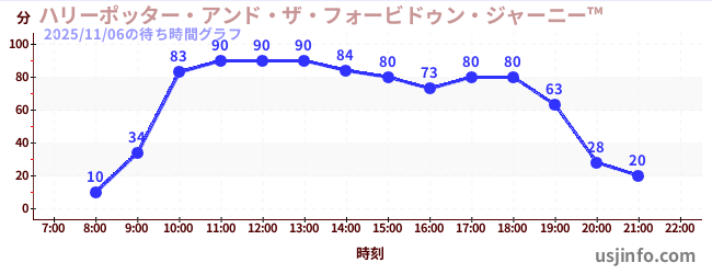 • ハリーポッター・アンド・ザ・フォービドゥン・ジャーニー™$B$N(B2025年11月06日の待ち時間