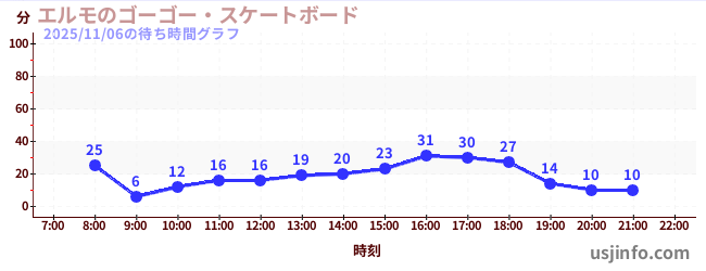 • エルモのゴーゴー・スケートボード$B$N(B2025年11月06日の待ち時間