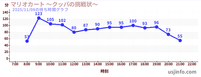 • マリオカート ~クッパの挑戦状~$B$N(B2025年11月08日の待ち時間