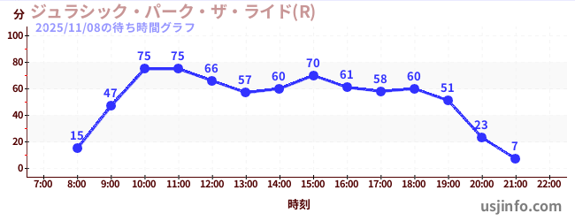 • ジュラシック・パーク・ザ・ライド(R)$B$N(B2025年11月08日の待ち時間