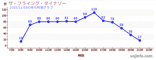 • ザ・フライング・ダイナソー$B$N(B2025年11月08日の待ち時間