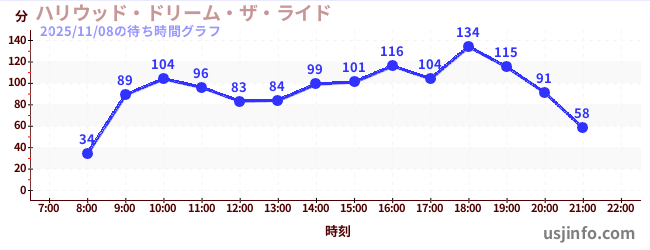 • ハリウッド・ドリーム・ザ・ライド〜バックドロップ〜$B$N(B2025年11月08日の待ち時間