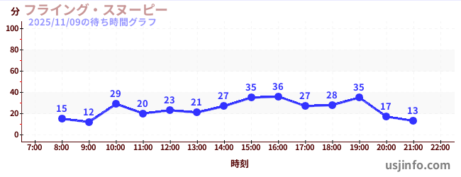 • フライング・スヌーピー$B$N(B2025年11月09日の待ち時間