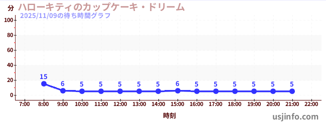 • ハローキティのカップケーキ・ドリーム$B$N(B2025年11月09日の待ち時間