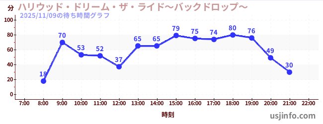 • ハリウッド・ドリーム・ザ・ライド〜バックドロップ〜$B$N(B2025年11月09日の待ち時間
