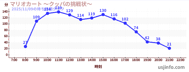 • マリオカート ~クッパの挑戦状~$B$N(B2025年11月09日の待ち時間