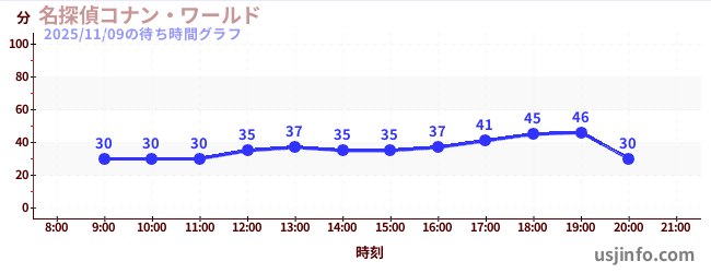 • 名探偵コナン・ワールド$B$N(B2025年11月09日の待ち時間