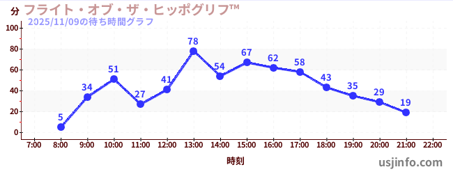 • フライト・オブ・ザ・ヒッポグリフ™$B$N(B2025年11月09日の待ち時間