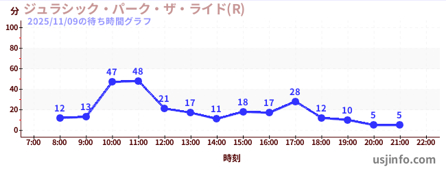 • ジュラシック・パーク・ザ・ライド(R)$B$N(B2025年11月09日の待ち時間