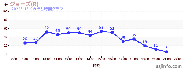 • ジョーズ(R)$B$N(B2025年11月10日の待ち時間