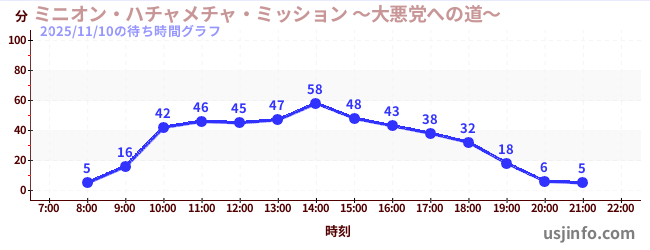 • ミニオン・ハチャメチャ・ミッション ~大悪党への道~$B$N(B2025年11月10日の待ち時間