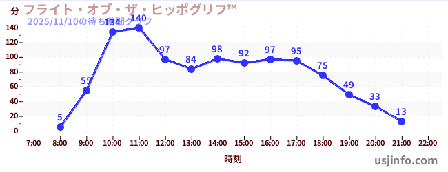 • フライト・オブ・ザ・ヒッポグリフ™$B$N(B2025年11月10日の待ち時間
