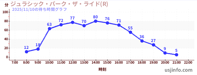 • ジュラシック・パーク・ザ・ライド(R)$B$N(B2025年11月10日の待ち時間