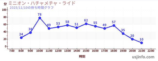 • ミニオン・ハチャメチャ・ライド$B$N(B2025年11月10日の待ち時間