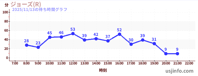 • ジョーズ(R)$B$N(B2025年11月13日の待ち時間