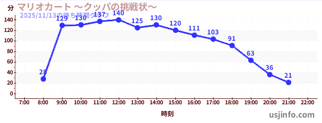 • マリオカート ~クッパの挑戦状~$B$N(B2025年11月13日の待ち時間