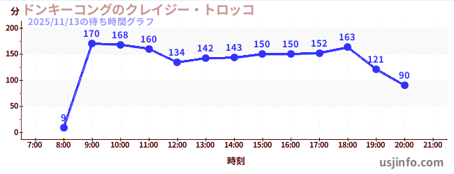 • ドンキーコングのクレイジー・トロッコ$B$N(B2025年11月13日の待ち時間